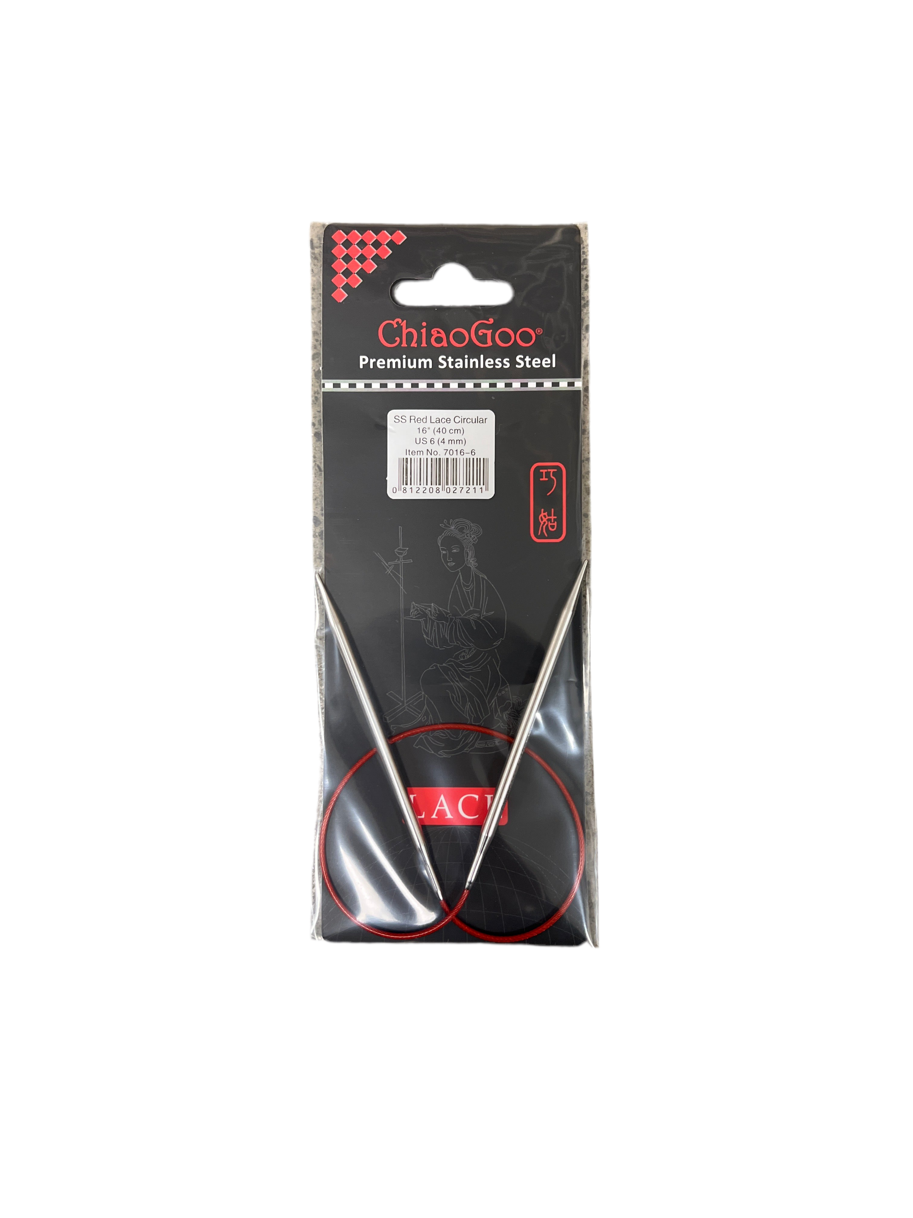 ChiaoGoo Knit RED line of surgical stainless steel circulars have a smooth, satin-sheen finish and memory-free, multi-strand, steel cable coated with red nylon allowing yarn to slide right over. The precisely machined tips are ergonomically designed with a bend to ease hand fatigue. Needle size is permanently laser imprinted on each circular. The joins are just spectacular!