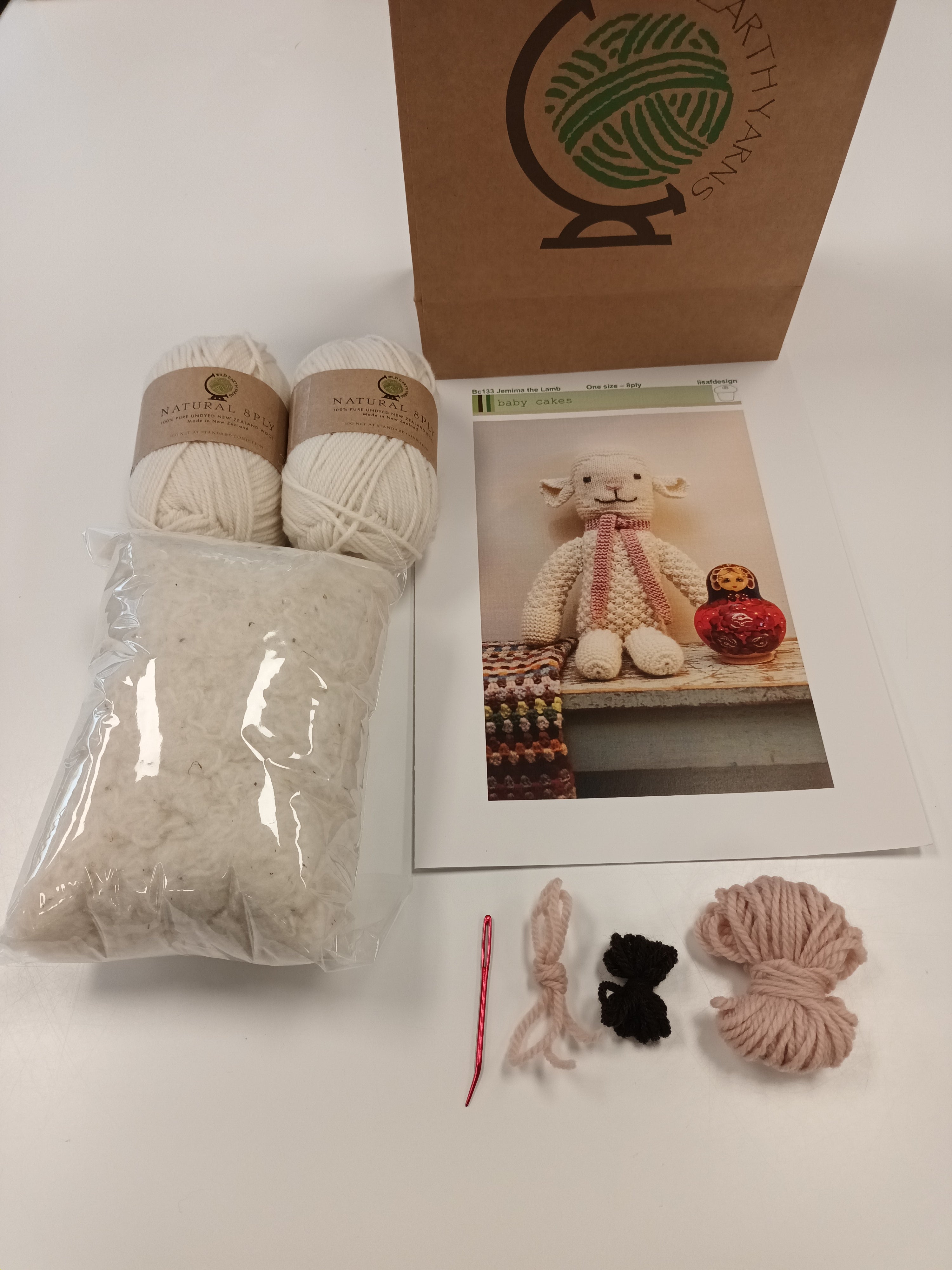 This delightful kit includes everything you need to knit your own soft, cuddly lamb.